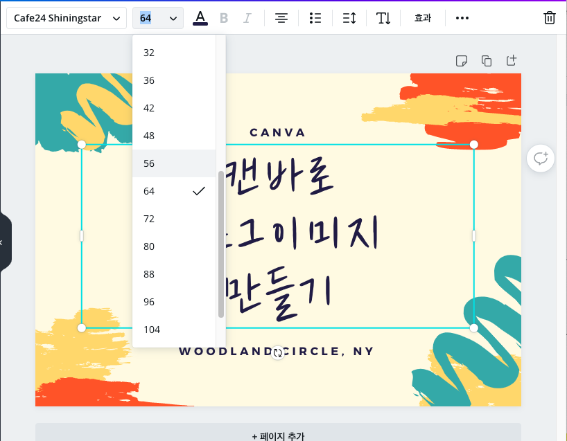 폰트 사이즈도 선택할 수 있고 텍스트 박스를 드래그해서 변경할 수도 있다.