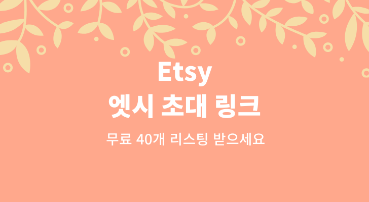 수공예나 그림, 예술품 관련 온라인 상점을 만들고 싶다면 Etsy 엣시를 생각해볼 수 있다. 엣시는 제품을 등록할 때 리스팅 수수료 $0.20을 지불하게 되는데 초대 링크를 통해 가입하면 첫 40개 리스팅을 무료로 올릴 수가 있다. 엣시 샵을 개설할 생각이 있다면 그냥 가입하지 말고 꼭 링크를 통해서 가입하시길~