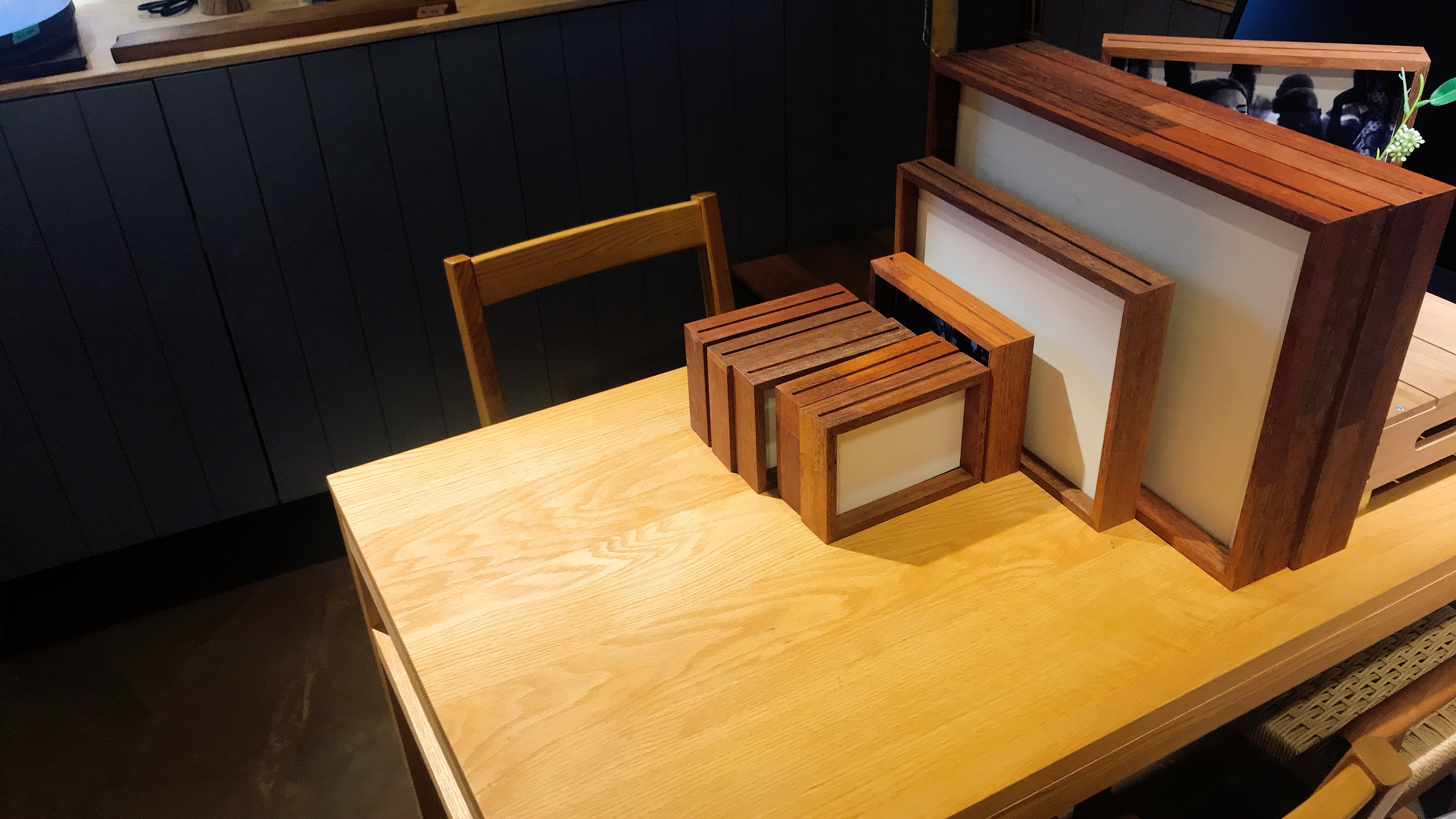 늘 지나가며 보던 목공방, 아마 거기서 만든 듯한 나무로 된 인테리어와 소품이 기분 좋았음
