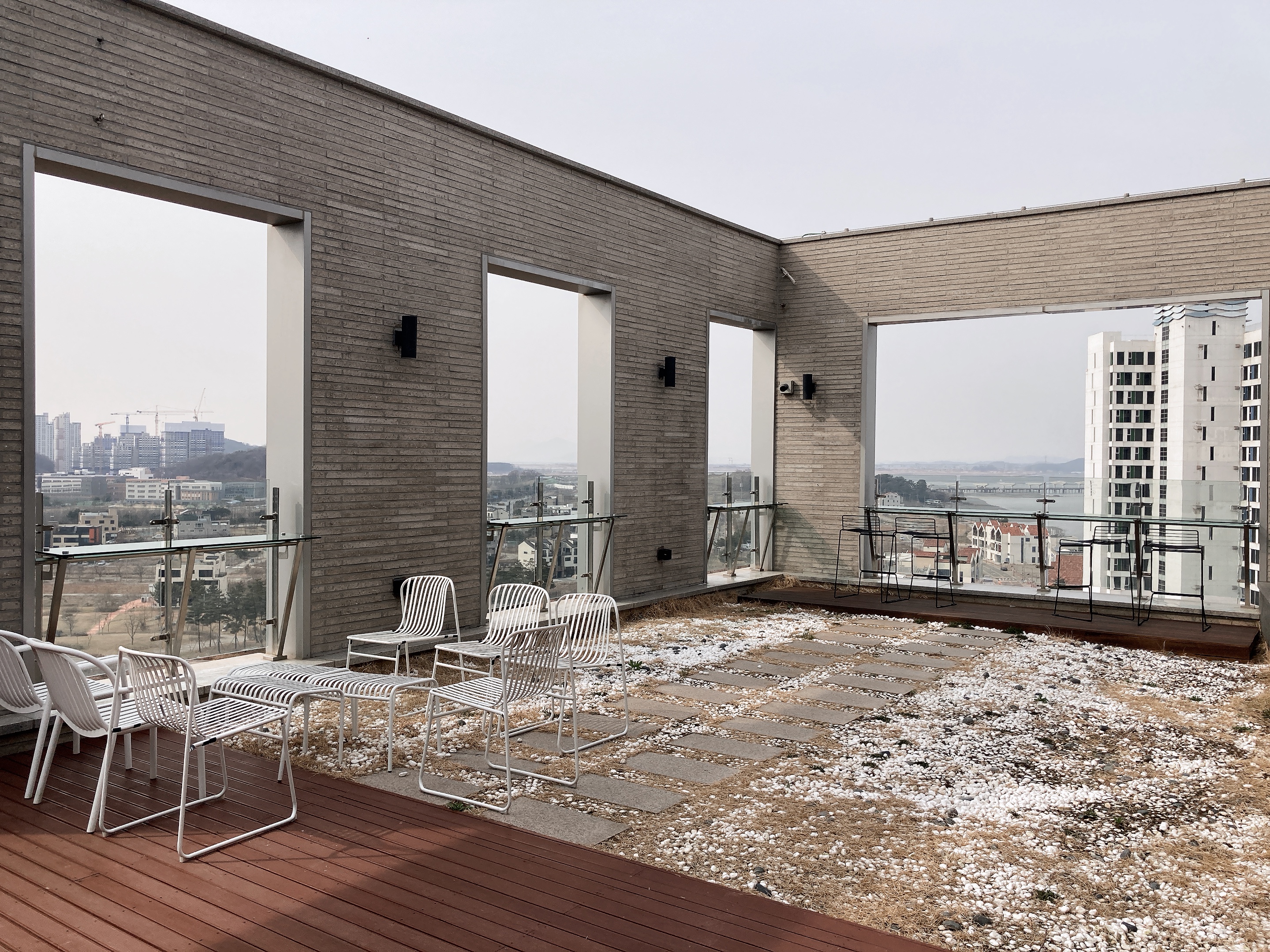 13층 옥상 테라스. 시원한 전경을 볼 수 있는 옥상 테라스.