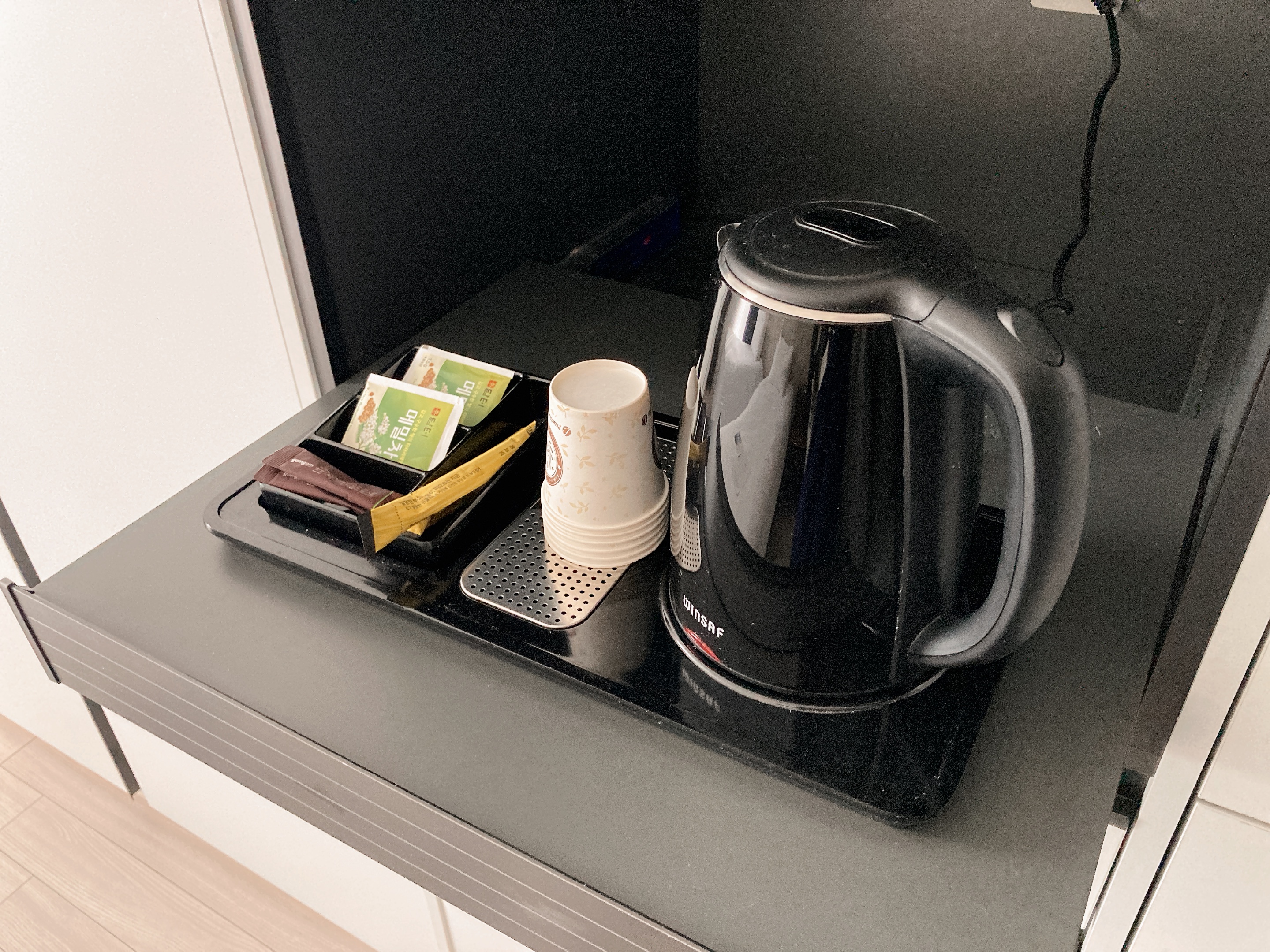 싱크대가 있는데 냄지나 조리도구는 없으니 취사까지는 불가능했다. 그냥 컵라면 정도는 가능~