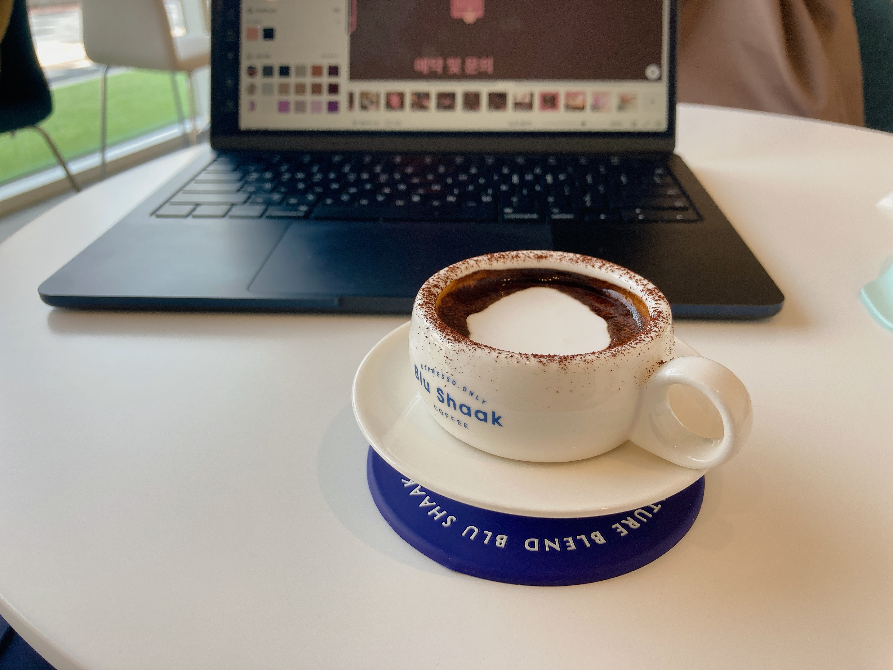 뭔가 하얗고 깔끔한 인테리어에 밝은 분위기가 좋아서 가끔 가서 작업한다. 가격도 착해서 좋고 크림올라간 샥라떼가 있어서 좋은 곳!