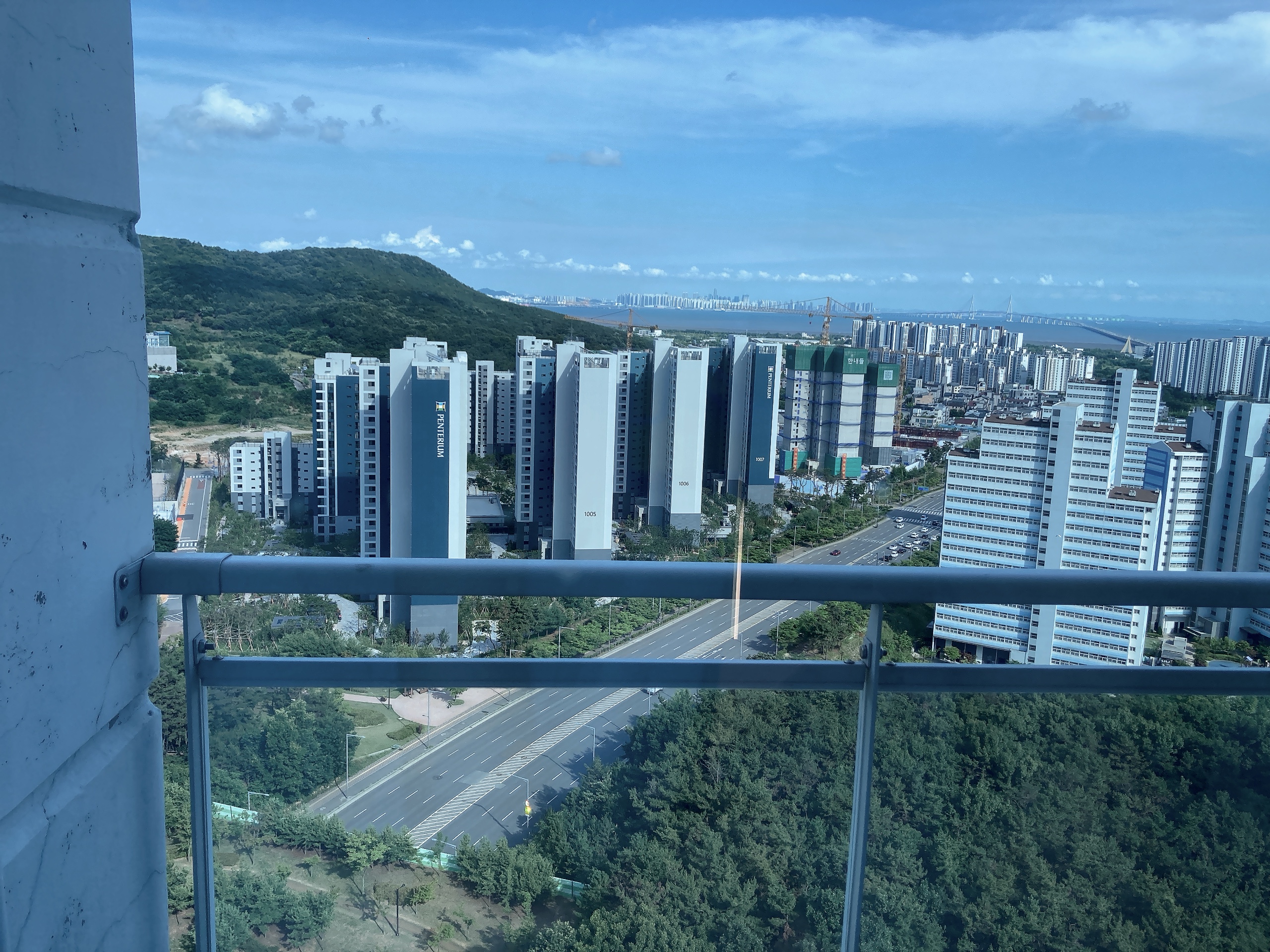 25층 고층이라 뷰가 좋다. 베란다도 있어서 문 열어두면 시원하게 바람 들어오고 답답하지 않은 것이 장점.